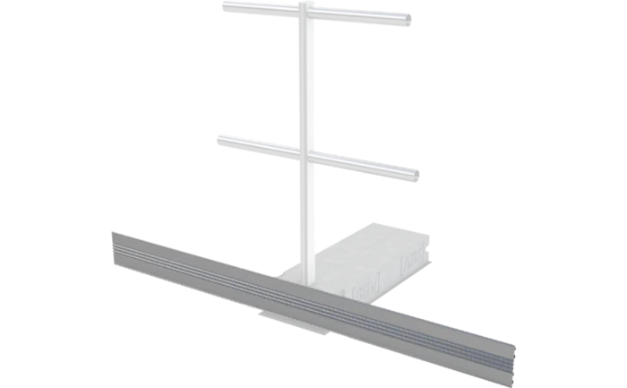 Dieses leichte Aluminium-Schutzgeländer wird mit Kies oder Substrat auf dem Gründach errichtet. Das System verzichtet auf zusätzliche Gewichte und nutzt einfach die auf Gründächern ohnehin vorhandene Auflast. Durch die stufenlos mögliche Erhöhung um maximal 120 mm ist der Ausgleich kleiner Höhenunterschiede unkompliziert und optisch unauffällig. Auch die Einbindung in eine Blitzschutzanlage (100 kA) nach DIN EN 62305-3 ist kein Problem.